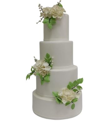 110302 - BOLO BRANCO COM FOLHAGENS VERDE 4 AND. 15X30X56CM