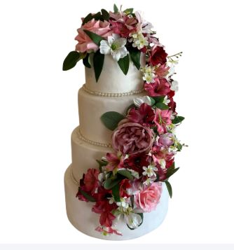 110303 - BOLO BRANCO FLORES MARSALA/ROSA 4 AND. 15X30X58CM