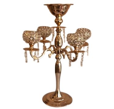 160403 - CANDELABRO DOURADO PEDRAS PARA 4 VELAS 18X80CM