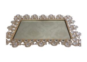 130813 - SUPORTE DE DOCE DOURADO FUNDO ESPELHADO PEDRAS RETANGULAR 41X29X03CM
