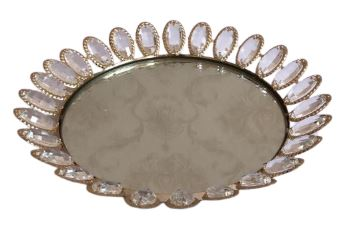 130814 - SUPORTE DE DOCE DOURADO FUNDO ESPELHADO DETALHE PEDRAS REDONDO 26X05CM