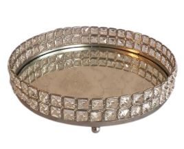 131110 - SUPORTE PRATA ESPELHADO PEDRAS REDONDO 31X07CM
