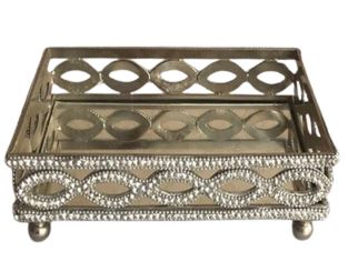 131112 - SUPORTE DE DOCES PRATA ESPELHADO RETANGULAR STRASS P 23X15X07CM